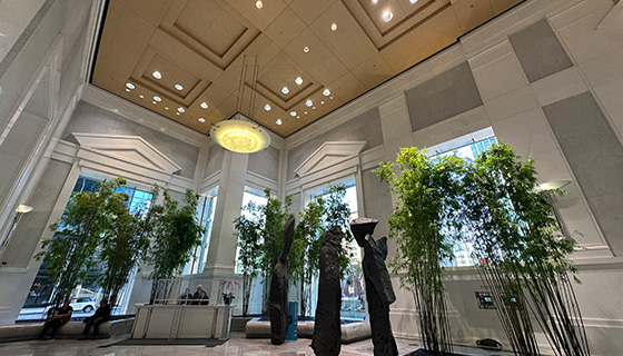 Standing in front of a striving and colorful living wall sustained by grow lights hung 20 feet above ground, David Brenner and Phil Greenberg (Plant and System Designers) discussed the importance of lighting for achieving good plant diversity on an interior living wall.